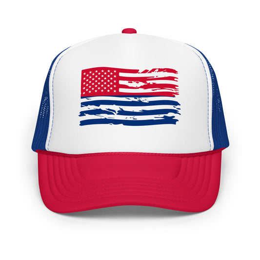 Distressed American Flag Trucker Hat – Red, White & Blue Foam Cap