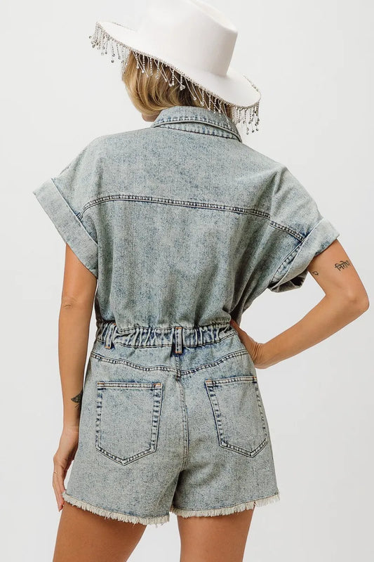 Women’s American Flag Denim Romper – Distressed Star-Spangled One-Piece