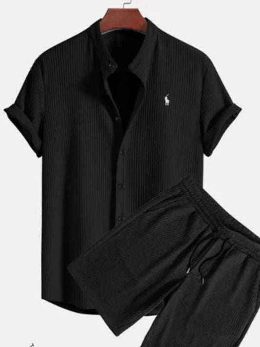 🌴 Men’s Johnny Collar Lounge Set – 2-Piece Relaxed Fit Top & Pants